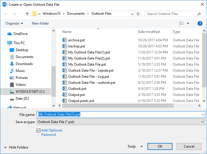 - Open Outlook 365 on your computer. Check that you're signed in. Click on "File" in the top menu. This opens the backstage view. Select "Open & Export." Look for this option in the left menu. Click "Open Outlook Data File." This lets you browse for PST files.