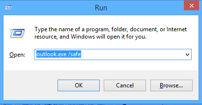- Close Outlook completely. Make sure it's not running in the background. Press Windows + R to open Run. This opens the Run command box. Type "outlook.exe /safe" and press Enter. Don't forget the space before /safe.