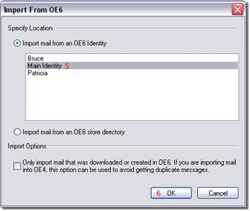 - Open Outlook Express on your computer. Go to File > Import > Messages from the top menu. Choose "Outlook Express 6" from the options and click Next. Select "Import mail from an OE6 store directory".