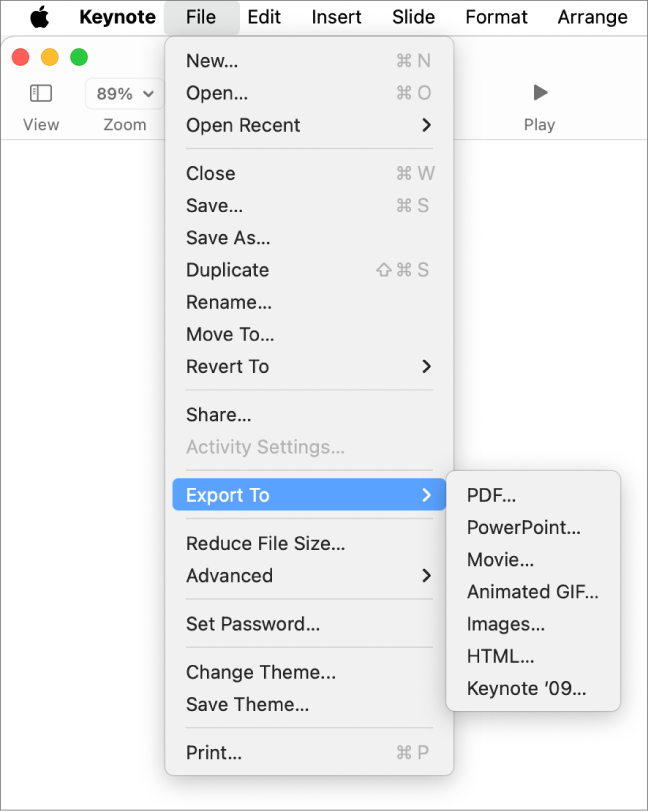 - Use Keynote on Mac: Open the Keynote file on your Mac, go to "File" → "Export To" → "PowerPoint." Choose the desired format (PPT or PPTX) and save the file.
