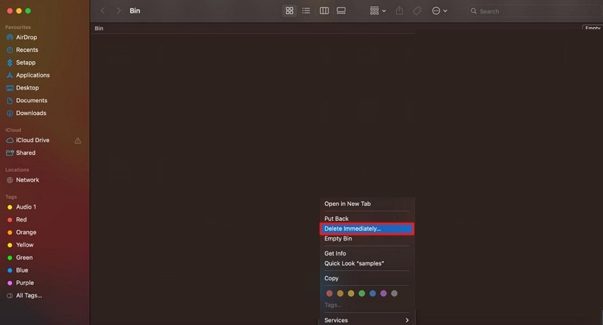 One of the convenient approaches when files refuse to be deleted is to choose the "Delete Immediately"option. This utility helps in removing the files immediately and accelerates the deletion process. Instead of sending the files to the Trash, this feature permanently deletes the selected items in a single step. To learn how to apply this feature, read the instructions as follows:
