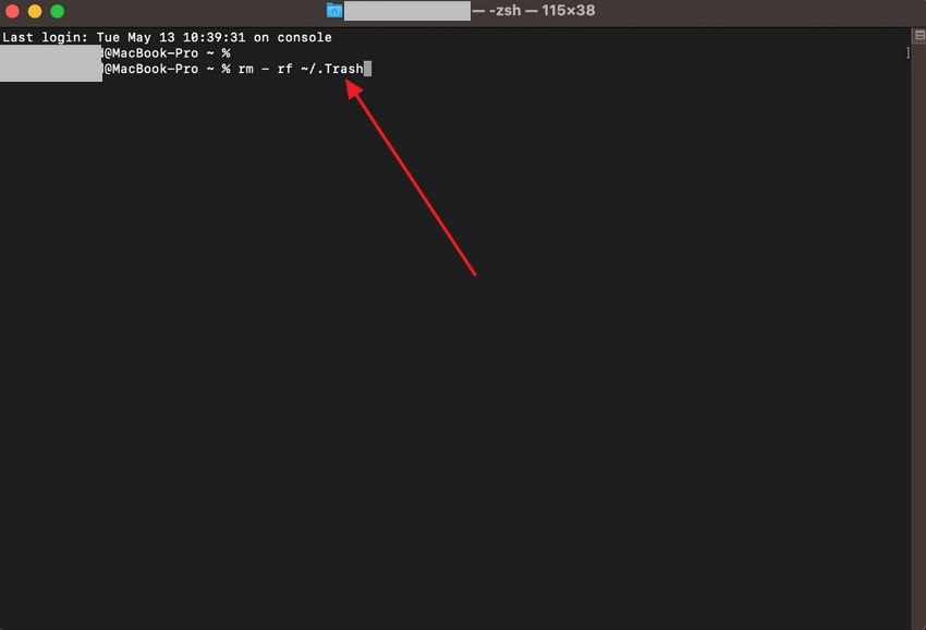 Step 1. Start by launching the Terminal on your device using the Launchpad and enter this command: "sudo rm -rf ~/.Trash/* "