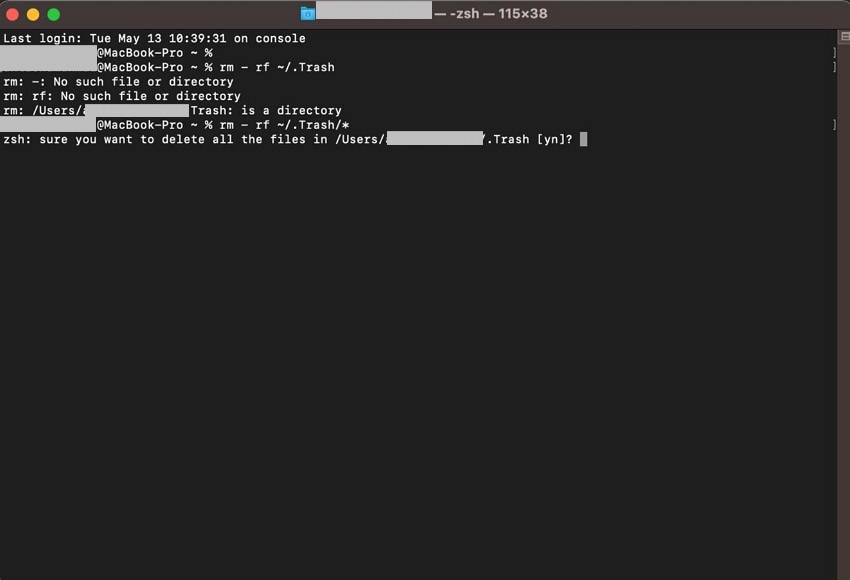 Step 2. The Terminal will ask for confirmation for deletion, so choose the desired answer and hit the "Enter"key to successfully remove all the files from the bin.
