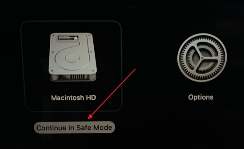 Instructions. To begin, hold the power button until the loading startup options appear and choose a volume. Next, keep holding the "Shift"key on the keyboard and click the "Continue in Safe Mode" option.