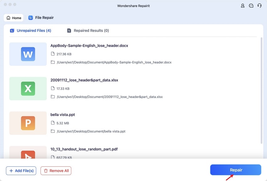 Step 3. Add More Files and Hit Repair
